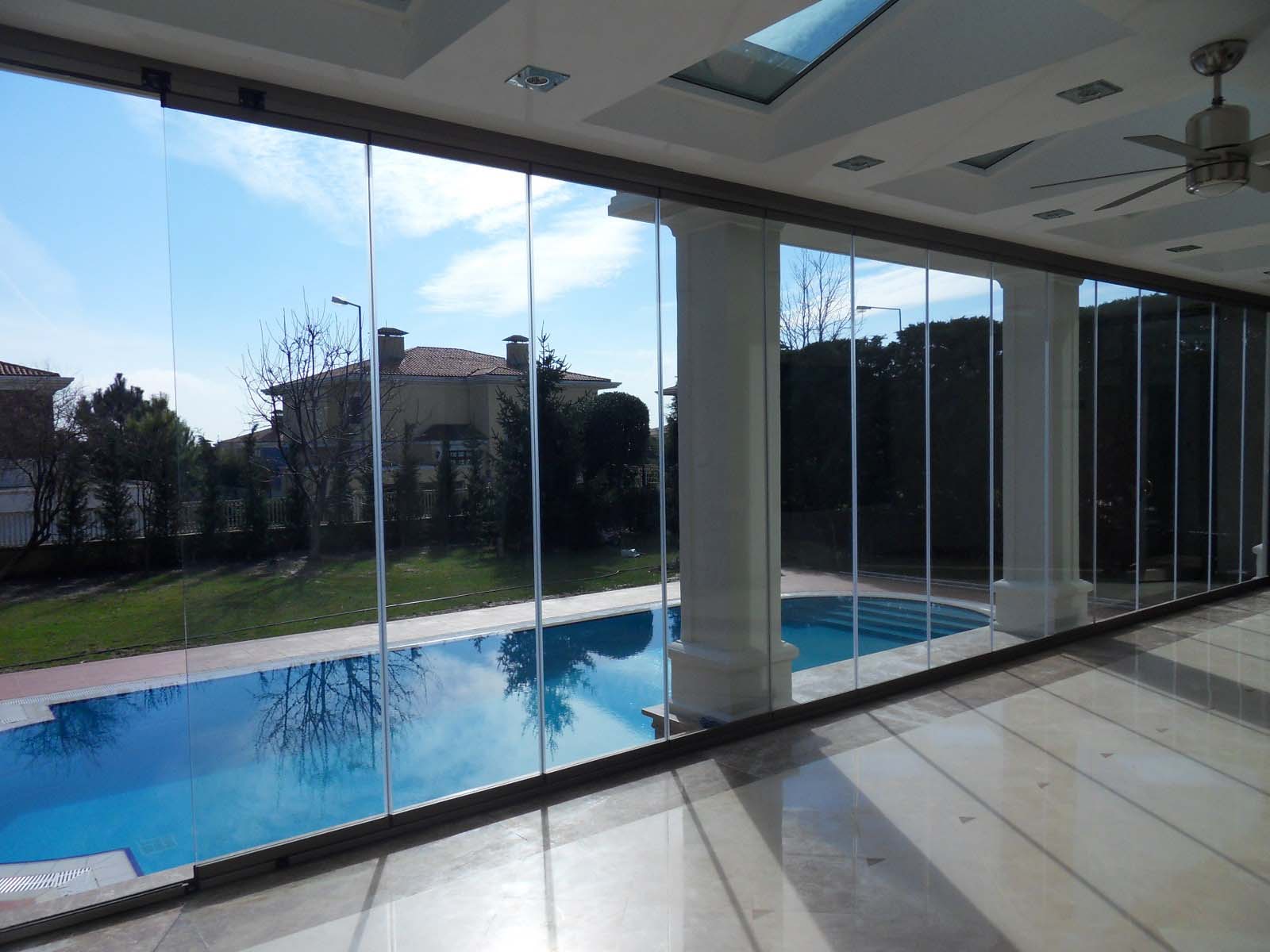 * Camlar sağa sola veya her iki yönde toparlanarak açılabilir. Köşelerden dönerek toplam park yeri haline dönüştürülen uygun yere toplanır.